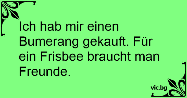 Ich hab mir einen Bumerang gekauft. Für ein Frisbee braucht man Freunde.