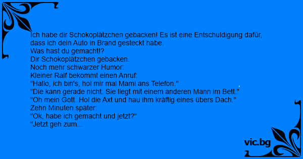 Ich habe dir Schokoplätzchen gebacken! Es ist eine Entschuldigung dafür, dass ich dein Auto in Brand gesteckt habe.