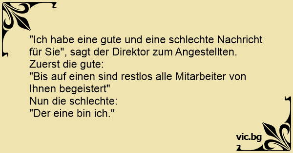 "Ich habe eine gute und eine schlechte Nachricht für Sie", sagt der Direktor zum Angestellten.