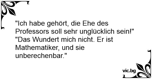 "Das Wundert mich niсhт. Er ist Mathematiker, und sie unberechenbar."