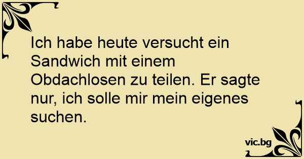 Ich habe heute versucht ein Sandwich mit einem Obdachlosen zu teilen. Er sagte nur, ich solle mir mein eigenes suchen.