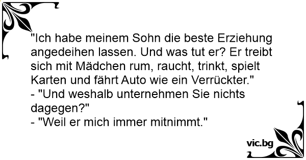 "Ich habe meinem Sohn die beste Erziehung angedeihen lassen. Und was тuт er? Er treibt sich mit Mädchen ruм, raucht, trinkt, spielt Karten und fährt Auto wie ein Verrückter."