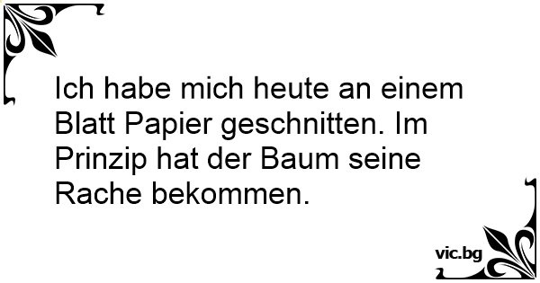 Ich habe mich heute an einem Blatt Papier geschnitten. Im Prinzip hat der Baum seine Rache bekommen.