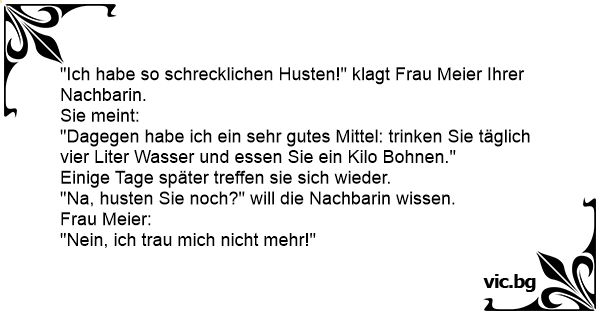 "Ich habe so schrecklichen Husten!" klagt Frau Meier Ihrer Nachbarin.