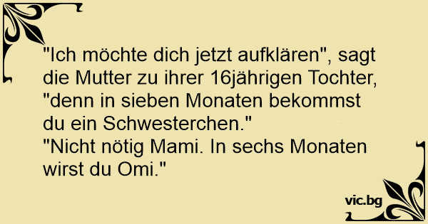 "Ich möchte dich jetzt aufklären", sagt die Mutter zu ihrer 16jährigen Tochter, "denn in sieben Monaten bekommst du ein Schwesterchen."