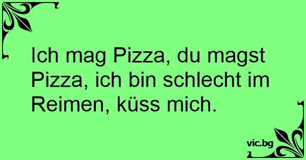 Ich mag Pizza, du magst Pizza, ich bin schlecht im Reimen, küss mich.