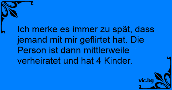Ich merke es immer zu spät, dass jemand mit mir geflirtet hat. Die Person ist dann mittlerweile verheiratet und hat 4 Kinder.