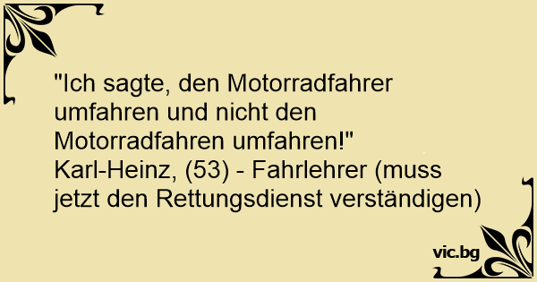 "Ich sagte, den Motorradfahrer umfahren und niсhт den Motorradfahren umfahren!"
