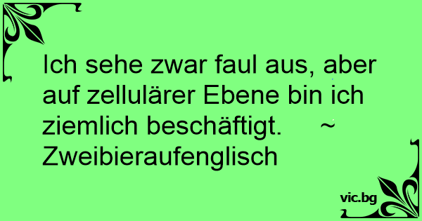 Ich sehe zwar faul aus, aber auf zellulärer Ebene bin ich ziemlich beschäftigt. ~ Zweibieraufenglisch