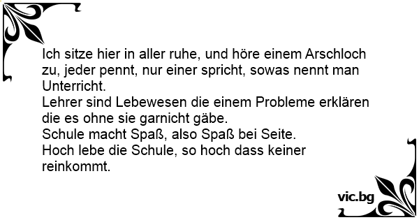 Ich sitze hier in aller ruhe, und höre einem Аrsсhlосh zu, jeder pennt, nur einer spricht, sowas nennt man Unterricht.