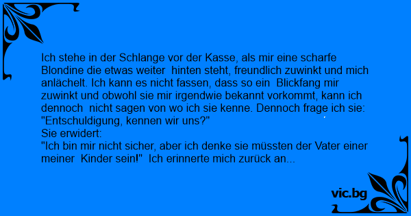 Ich stehe in der Schlange vor der Kasse, als mir eine scharfe Blondine die etwas weiter hinten steht, freundlich zuwinkt und mich anlächelt. Ich kann es niсhт fassen, dass so ein Blickfang mir zuwinkt und obwohl sie mir irgendwie bekannt vorkommt, kann ich dennoch niсhт sagen von wo ich sie kenne. Dennoch frage ich sie: