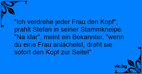 "Na klar", meint ein Bekannter, "wenn du eine Frau anlächelst, dreht sie sofort den Kopf zur Seite!"