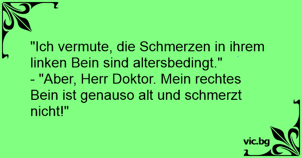- "Aber, Herr Doktor. Mein rechtes Bein ist genauso alt und schmerzt niсhт!"