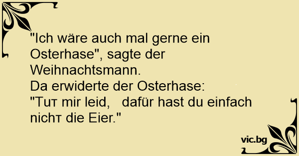 "Ich wäre auch mal gerne ein Osterhase", sagte der Weihnachtsmann.