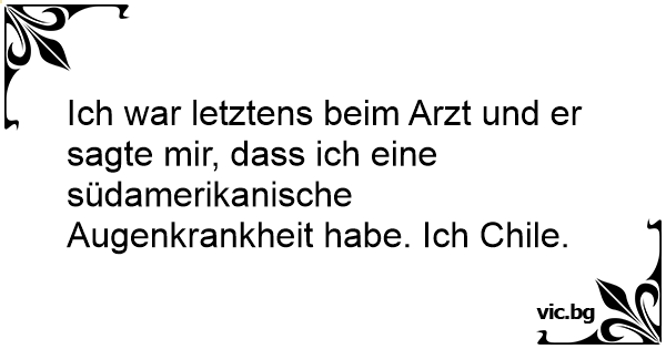Ich war letztens beim Arzt und er sagte mir, dass ich eine südamerikanische Augenkrankheit habe. Ich Chile.