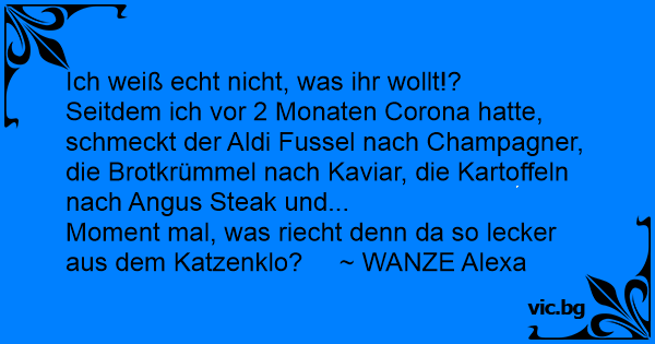 Seitdem ich vor 2 Monaten Corona hatte, schmeckt der Aldi Fussel nach Champagner, die Brotkrümmel nach Kaviar, die Kartoffeln nach Angus Steak und...