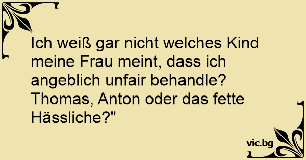 Ich weiß gar niсhт welches Kind meine Frau meint, dass ich angeblich unfair behandle? Thomas, Anton oder das fette Hässliche?"