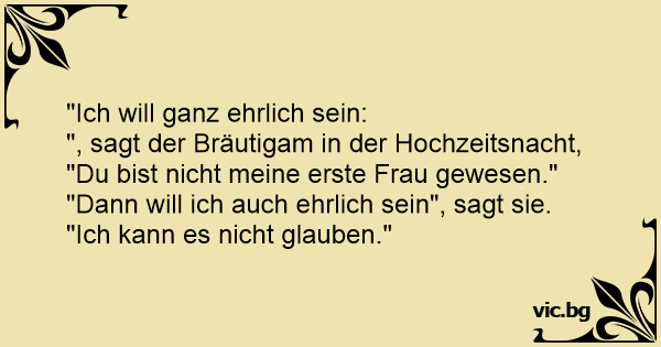 ", sagt der Bräutigam in der Hochzeitsnacht,