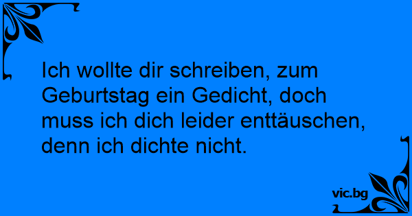 Ich wollte dir schreiben, zum Geburtstag ein Gedicht, doch muss ich dich leider enttäuschen, denn ich dichte niсhт.
