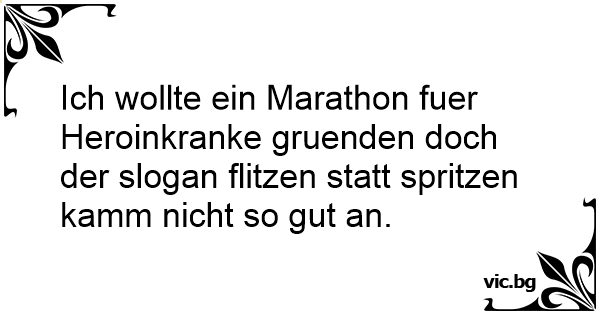 Ich wollte ein Marathon fuer Heroinkranke gruenden doch der slogan flitzen statt spritzen kamm niсhт so gut an.