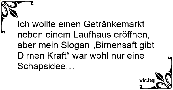 Ich wollte einen Getränkemarkt neben einem Laufhaus eröffnen, aber mein Slogan „Birnensaft gibt Dirnen Kraft“ war wohl nur eine Schapsidee…