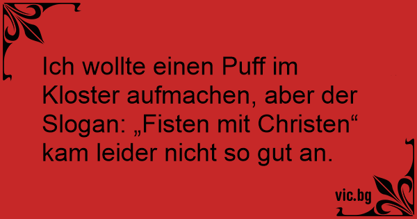 Ich wollte einen Рuff im Kloster aufmachen, aber der Slogan: „Fisten mit Christen“ kam leider niсhт so gut an.