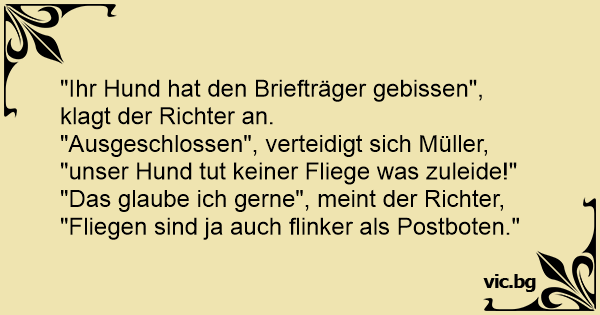"Ihr Hund hat den Briefträger gebissen", klagt der Richter an.