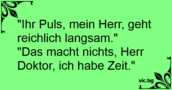 "Ihr Puls, mein Herr, geht reichlich langsam."
