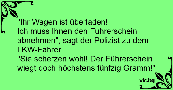 "Sie scherzen wohl! Der Führerschein wiegt doch höchstens fünfzig Gramm!"