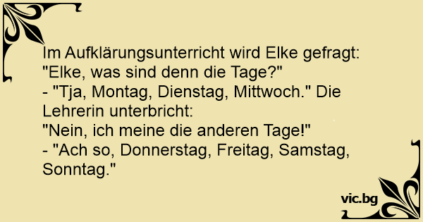 - "Tja, Montag, Dienstag, Mittwoch." Die Lehrerin unterbricht: