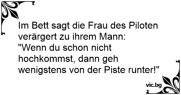 Im Bett sagt die Frau des Piloten verärgert zu ihrem Mann: