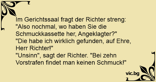 "Unsinn", sagt der Richter. "Bei zehn Vorstrafen findet man keinen Schmuck!"