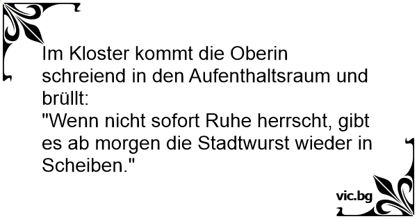 Im Kloster kommt die Oberin schreiend in den Aufenthaltsraum und brüllt: