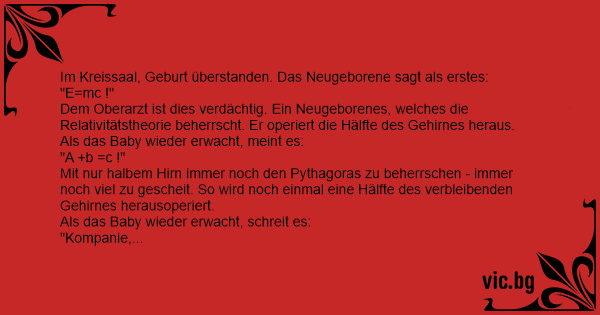 Dem Oberarzt ist dies verdächtig. Ein Neugeborenes, welches die Relativitätstheorie beherrscht. Er operiert die Hälfte des Gehirnes heraus.