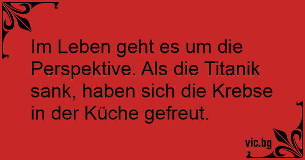 Im Leben geht es um die Perspektive. Als die Titanik sank, haben sich die Krebse in der Küche gefreut.