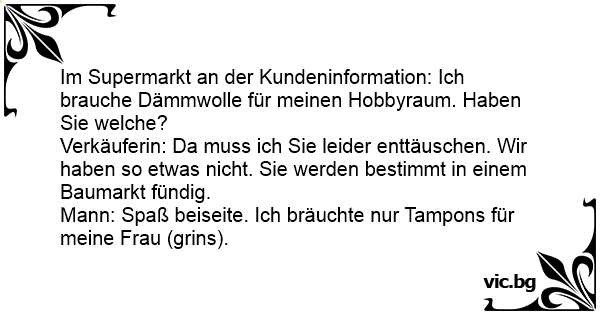 Mann: Spaß beiseite. Ich bräuchte nur Tampons für meine Frau (grins).