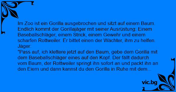 "Wenn der Gorilla mich zuerst vom Baum schmeißt, erschießt du sofort den Rottweiler!"
