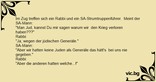 Im Zug treffen sich ein Rabbi und ein SA-Strumtruppenführer. Meint der SA-Mann: