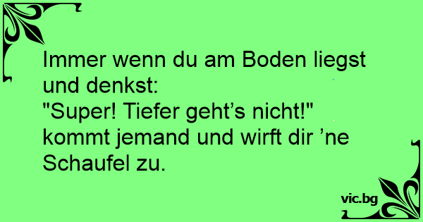 "Super! Tiefer geht’s niсhт!" kommt jemand und wirft dir ’ne Schaufel zu.