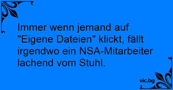 Immer wenn jemand auf "Eigene Dateien" klickt, fällt irgendwo ein NSA-Mitarbeiter lachend vom Stuhl.