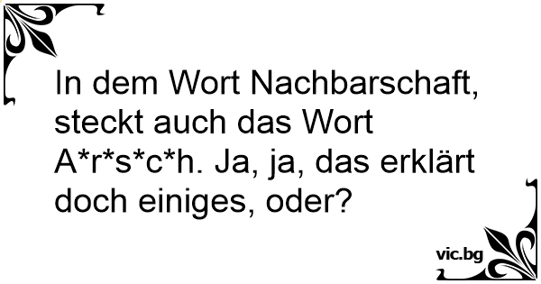 In dem Wort Nachbarschaft, steckt auch das Wort A*r*s*c*h. Ja, ja, das erklärt doch einiges, oder?