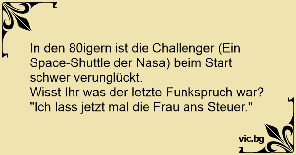 Was war der letzte Funkspruch der Challenger, bevor sie explodierte? "Ich lass jetzt mal die Frau ans Steuer ..."
