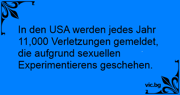 In den USA werden jedes Jahr 11,000 Verletzungen gemeldet, die aufgrund sexuellen Experimentierens geschehen.