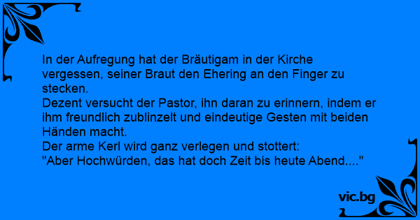 In der Aufregung hat der Bräutigam in der Kirche vergessen, seiner Braut den Ehering an den Finger zu stecken.