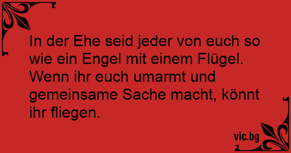In der Ehe seid jeder von euch so wie ein Engel mit einem Flügel. Wenn ihr euch umarmt und gemeinsame Sache macht, könnt ihr fliegen.