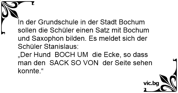 In der Grundschule in der Stadt Bochum sollen die Schüler einen Satz mit Bochum und Saxophon bilden. Es meldet sich der Schüler Stanislaus: