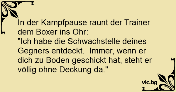 "Ich habe die Schwachstelle deines Gegners entdeckt. Immer, wenn er dich zu Boden geschickt hat, steht er völlig ohne Deckung da."