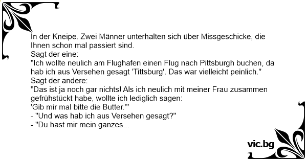 "Ich wollte neulich am Flughafen einen Flug nach Pittsburgh buchen, da hab ich aus Versehen gesagt 'Tittsburg'. Das war vielleicht peinlich."