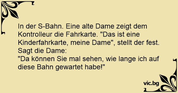 In der S-Bahn. Eine alte Dame zeigt dem Kontrolleur die Fahrkarte. "Das ist eine Kinderfahrkarte, meine Dame", stellt der fest.