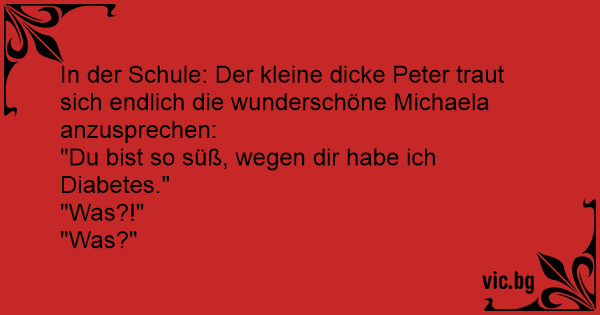 In der Schule: Der kleine dicke Peter traut sich endlich die wunderschöne Michaela anzusprechen: